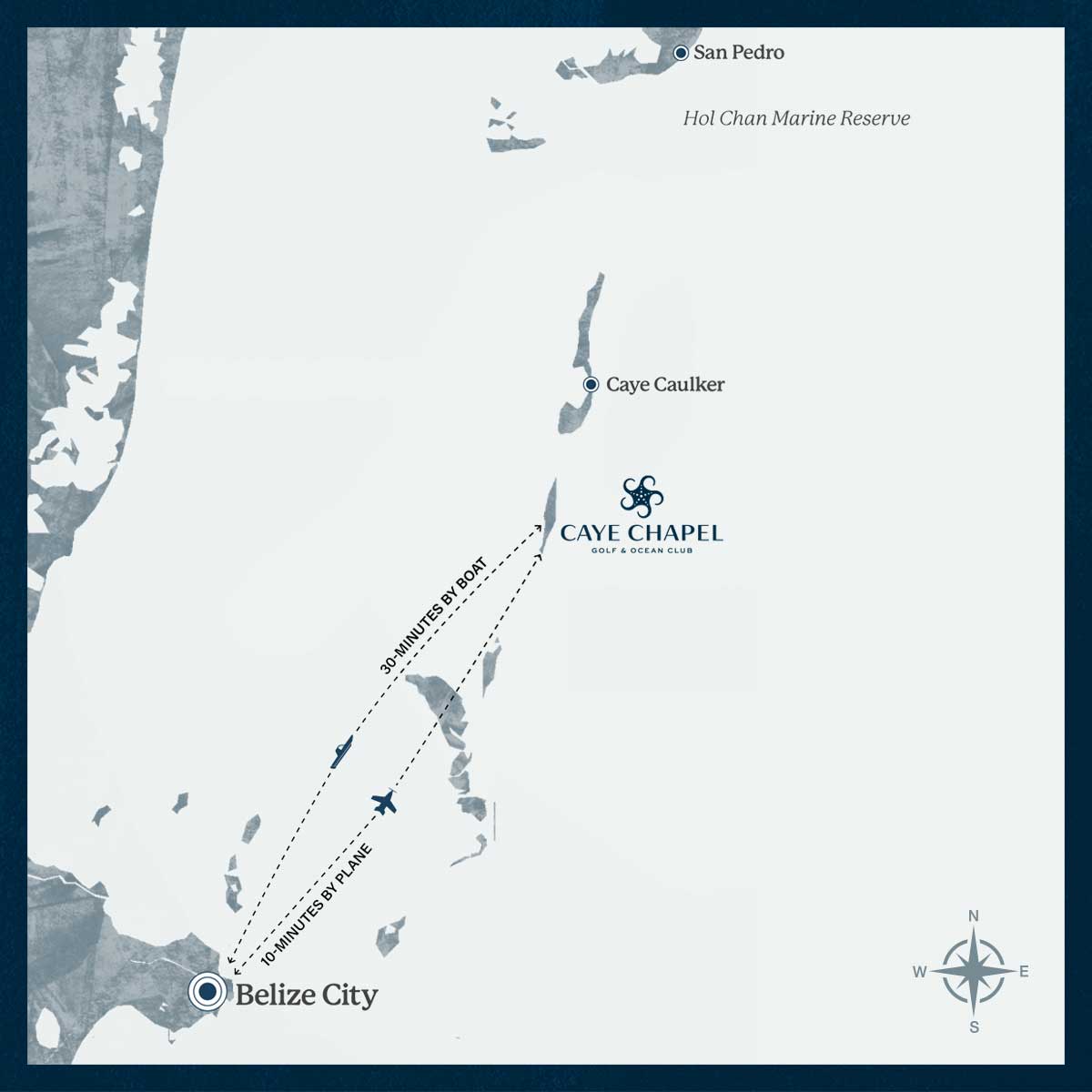 From Belize City, your transfer to Caye Chapel is scenic and short: less than 10 minutes by air or 30 minutes by private boat.